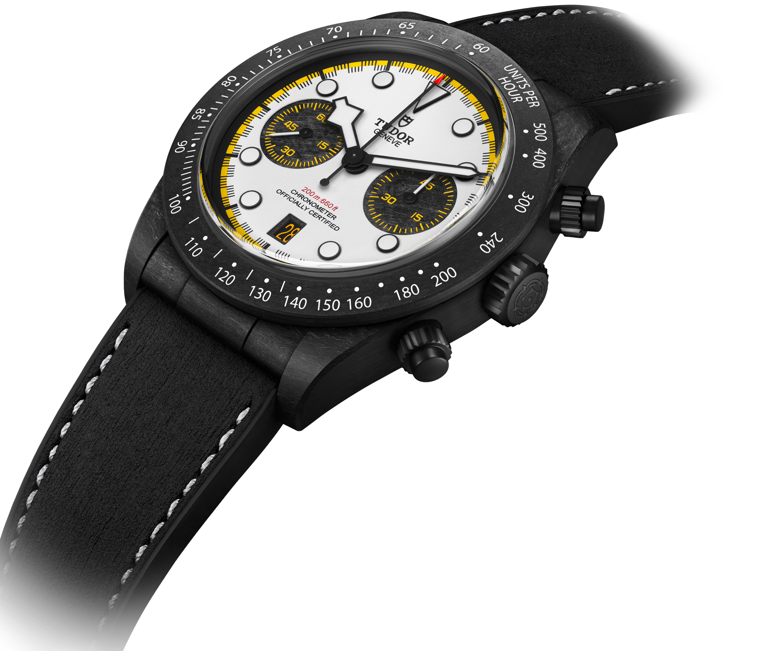 블랙 베이 크로노 "카본 26"은 레이싱 트랙 위에서 존재감을 발휘해 온 TUDOR, 그리고 매년 Formula 1 레이스 시즌마다 멋진 활약을 펼친 TUDOR 시계의 유서 깊은 전통을 이어갑니다. 이 모델은 비자 캐시 앱 레이싱 불스 팀의 2026 레이스 카에 바치는 찬사입니다. 새 시즌을 위해 단장한 레이스 카에 맞춰 시계 또한 색다른 디자인으로 거듭났습니다. 탄소 섬유 소재의 가벼운 케이스와 컬럼 휠 자체 제작 크로노그래프 칼리버를 갖추고 있으며, 블랙 베이 크로노 "카본 26" 디자인을 이루는 디테일은 비자 캐시 앱 레이싱 불스 팀의 레이싱 카, VCARB 03에 직접적으로 경의를 표합니다. "카본 26"의 다이얼에는 레이싱 카의 엔진 카울링에 사용된 선명한 옐로우 컬러를 사용해 빠르게 질주하는 듯한 느낌을 선사합니다. 이 크로노그래프는 끊임없이 탁월한 메케니컬 기능을 추구하는 TUDOR의 정신을 나타냅니다.