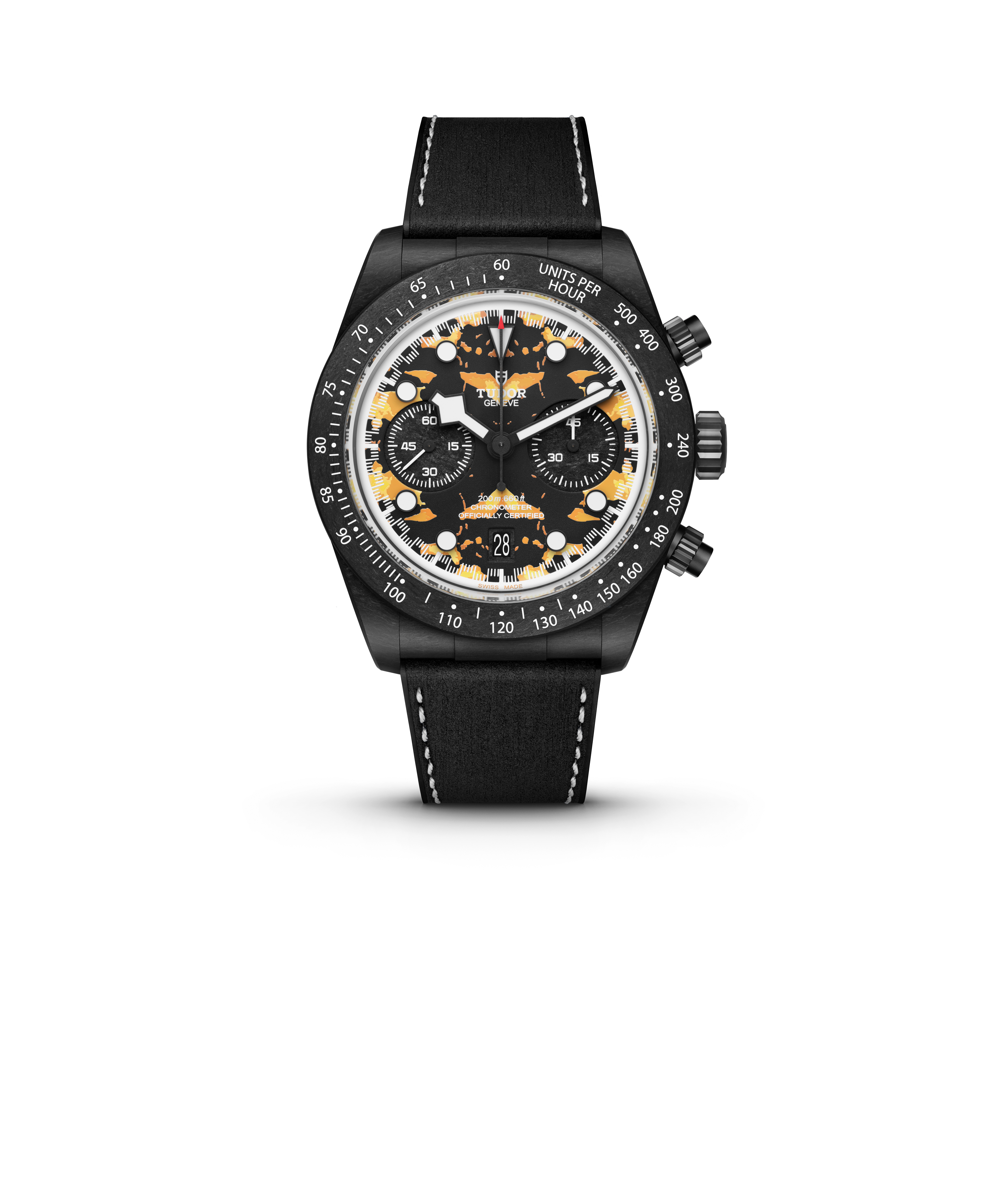 Drivers Liam Lawson and Isack Hadjar will have elements of this Austin-only livery on their racing suits to match the car, but that’s not all, Tudor has produced two unique watches—one for each driver—to celebrate this iconic race weekend. It's a Black Bay Chronograph “Carbon 25” like you've never seen before. The dial matches the tortoise shell pattern of the car!